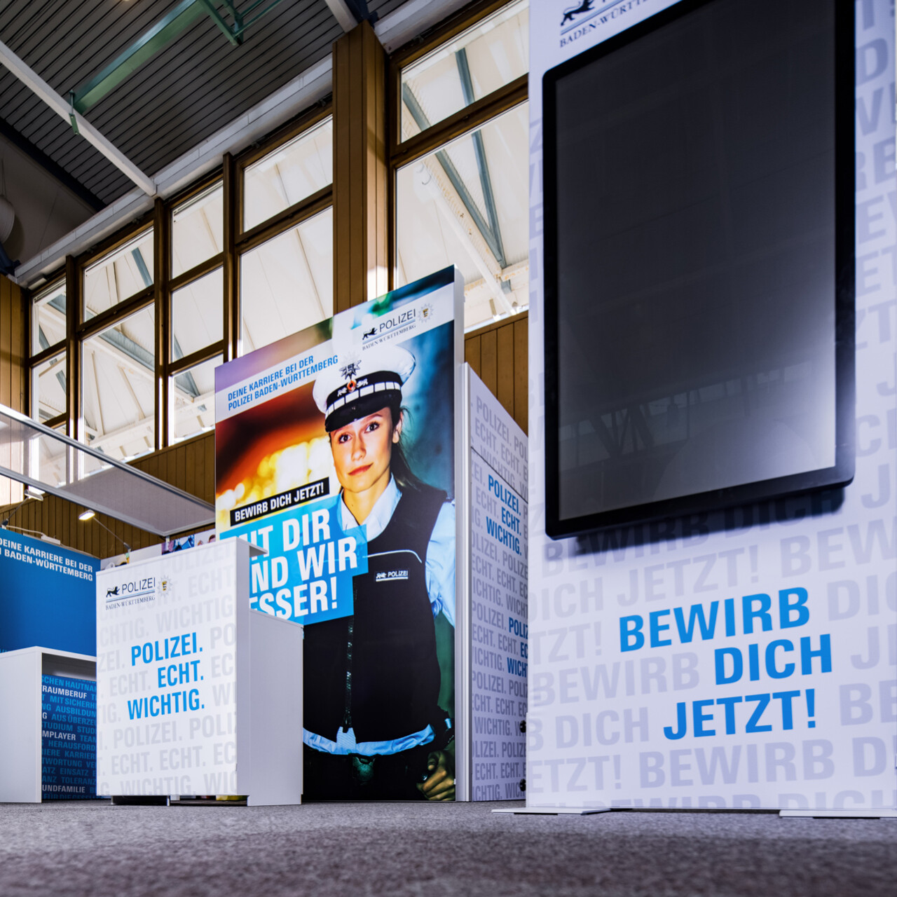 Für die Polizeihochschule Baden-Württemberg konzipierte CG eine All-in-one-Lösung für Jobmessen und interne Veranstaltungen. Das gesamte System wurde schlüsselfertig mit allen Komponenten von CG entwickelt, zusammengestellt und geliefert.